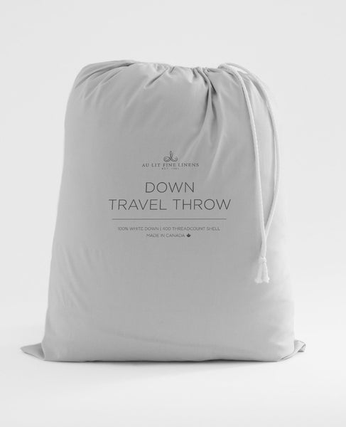 This travel throw is one of our most loved and gifted products, and we can see why! Crafted from pure white duck down and made right here in Canada, this portable duvet is a compact way to make every plane ride or hotel stay more comfortable. Many of our customers prefer to use this duvet in place of the standard hotel duvet. Easily packable in their suitcase or carry-on and comes with a washable cover in pure, natural cotton.