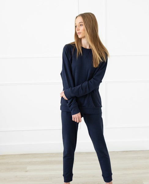 The easiest way to look stylish and be insanely comfortable. Made from a super-soft, sustainable blend of bamboo/cotton French Terry (and sewn right here in Toronto!) these luxurious sweats feature a modern, stylish fit. Throw a leather jacket or wool coat on top and no one will realize you're essentially in your pjs! Plus, you can mix and match the Cuff Lounge Pant or Sweatshirt with other pieces once you've reached your destination.