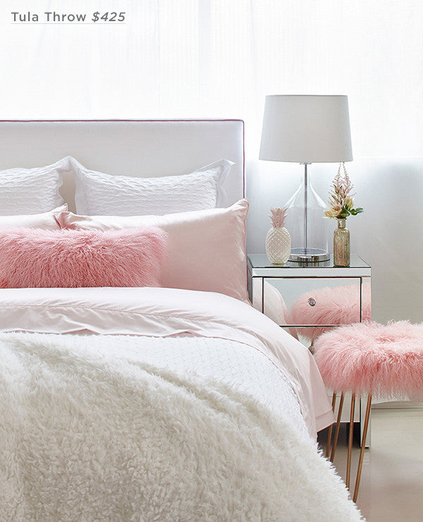 3. Embrace (faux) Fur: Every dorm room could do with a fleck of fur. Be it a cozy faux fur throw, a fluffy fur pillow, or a plush furry stool, this on-trend look will add texture, warmth, and style to the space all in one shot.