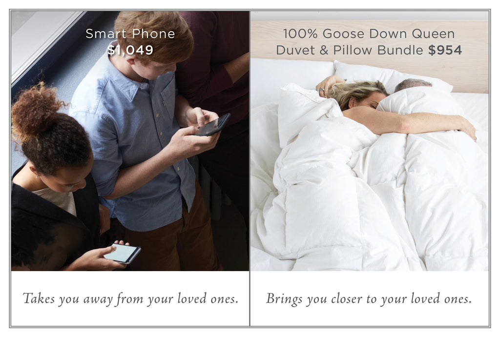 What does a good sleep cost? No more than the latest smart phone! Having the latest in tech can make life a lot more interesting, but putting your phone down at the end of the night and jumping into what feels like a cloud puts all the day's activities out-of-mind. We use 100% all natural fabrics and make everything here in Canada.