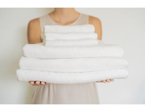 - If white towels start greying, soak them in a mixture of Oxiclean (or other gentle bleach alternative) and water for an hour up to overnight, then wash/dry as usual. Avoid bleach! Using bleach will harm the cotton fibres, reduce the longevity of your towels, and can actually discolour whites