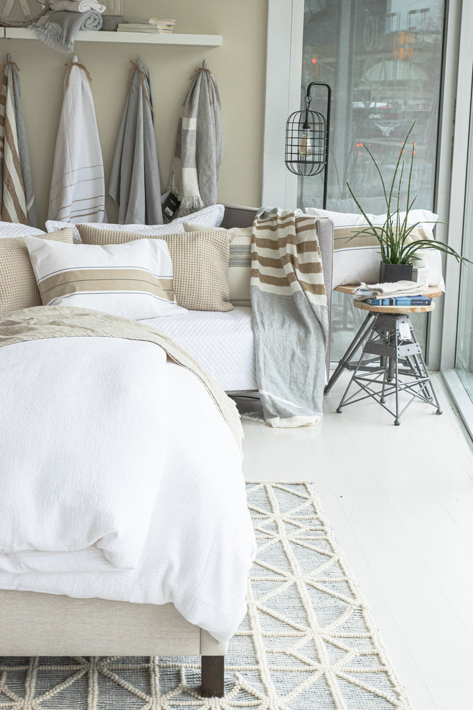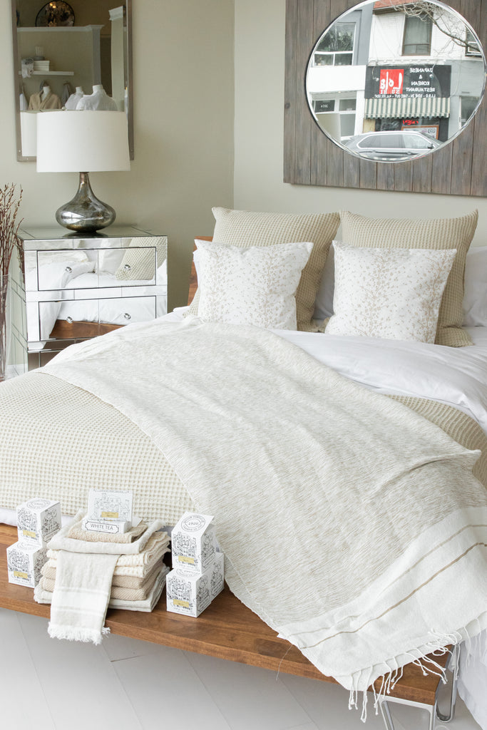 We've just unveiled our brand new spring window and we're hoping the weather catches up to us! This season is all about warm neutrals (move over Grey!) and washed textures like linen, cotton, waffle, and matelassé. Pop in to see the full collection in person, or check out our New Arrivals online.